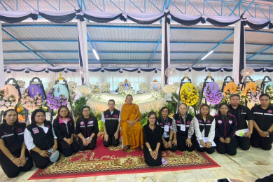 พระสุวรรณวชิราทร รองเจ้าคณะจังหวัดอ่างทอง เยี่ยมให้กำลังใจ พร้อมมอบเงินช่วยเหลือครอบครัวผู้เสียชีวิต เหตุเพลิงไหม้รถบัสทัศนศึกษา