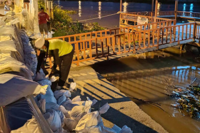 นายกอบจ.อ่างทอง ลงพื้นที่ตรวจสอบระดับน้ำในแม่น้ำเจ้าพระยา บริเวณสะพานเลี่ยงเมืองอ่างทอง และ สะพาน อ.ป่าโมก