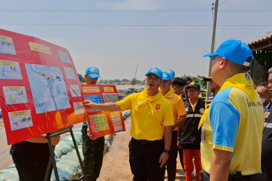 เลขาฯสทนช. ตรวจเยี่ยมจุดเสี่ยงอุทกภัย ใน อ.ไชโย จ.อ่างทอง พร้อมให้คงอัตราการระบายน้ำเขื่อนเจ้าพระยาที่ 2,200 ลบ.ม./วินาที
