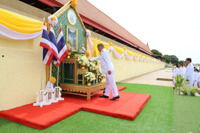 อ่างทอง เชิญคนโทน้ำพระพุทธมนต์ศักดิ์สิทธิ์จากพระอุโบสถวัดไชโยวรวิหาร ไปยังกระทรวงมหาดไทย
