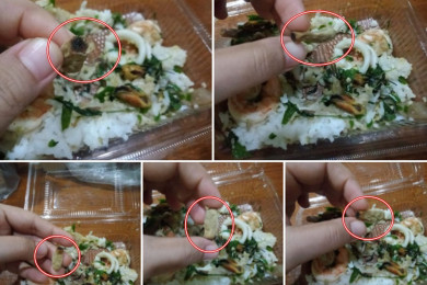 อ้วกแทบพุ่ง! ซื้อข้าวพร้อมทาน เจอ “หนอน” ตัวเบิ้มๆ