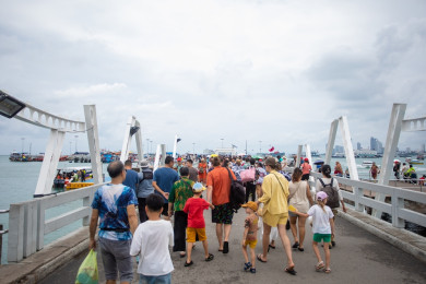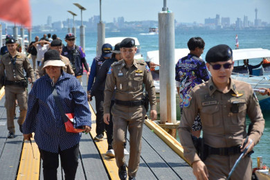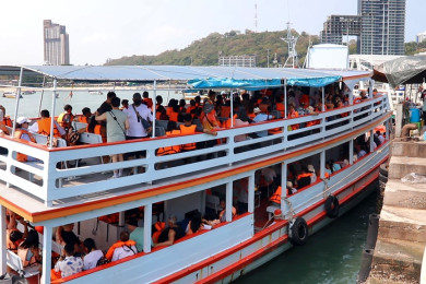 ตำรวจท่องเที่ยวพัทยาดูแลความปลอดภัยนักท่องเที่ยวเดินทางไปเกาะล้าน หลังเจ้าท่าชักธงแดงเตือนคลื่นลมแรง