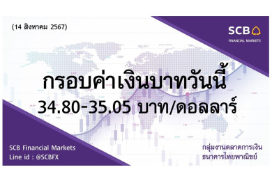 ธนาคารไทยพาณิชย์ประเมินค่าเงินบาทวันนี้เคลื่อนไหวในกรอบ 34.15-34.35 บาท/ดอลลาร์ แข็งค่าต่อเนื่อง