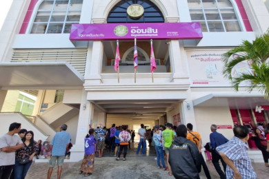สุรินทร์ กลุ่มเปราะบางอำเภอบัวเชด 6 ตำบล 68 หมู่บ้าน พื้นที่ติดชายแดน แห่กดเงินหมื่น คนแน่น มีธนาคารเพียงแห่งเดียว