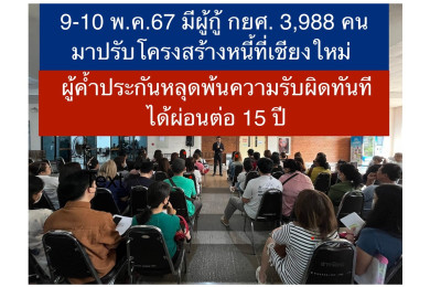 กยศ.เผย 9-10 พ.ค.67 มีผู้กู้มาปรับโครงสร้างหนี้ที่เชียงใหม่ 3,988 คน ผู้ค้ำประกันหลุดพ้นความรับผิดทันที ได้ผ่อนต่ออีก 15 ปี