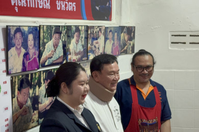 "ทักษิณ" แวะกิน "ข้าวซอยเสมอใจ" ร้านโปรดในอดีต ชมยังอร่อยเหมือนเดิม "เค สามถุยส์" พาคนเสื้อแดงรอทักทาย
