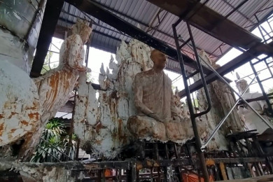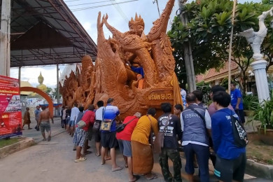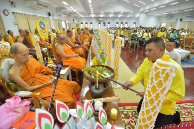 พุทธศาสนิกชน ร่วมทำบุญตักบาตร ฟังธรรมเทศนา พร้อมกับหล่อเทียนพรรษา เนื่องในโอกาสวันอาสาฬหบูชา