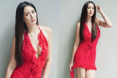 "เบนซ์ ปุณยาพร" สวมเดรสแดงแหวกอกสาดความแซ่บ