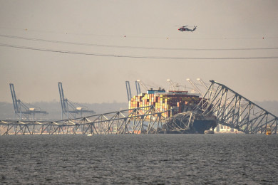 ระทึก! เรือบรรทุกสินค้าสิงคโปร์ ชนสะพานที่สหรัฐฯพังถล่ม "คน-รถยนต์" ร่วงตกน้ำจำนวนมาก สูญหายหลายราย