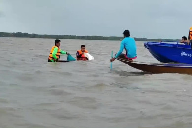 คลื่นลมแรง ซัดเรือประมงพื้นบ้านสองผัวเมีย วางอวนดักปูล่มพลิกคว่ำ ผัวรอด ฝ่ายเมียสูญหาย
