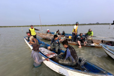 ชาวฝรั่งเศส 8 ชีวิต นั่งเรือเจ็ทสกีล่องเที่ยวเพลิน น้ำลดติดโคลนชายฝั่งกาญจนดิษฐ์