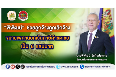 ได้เงินเพิ่ม! "พิพัฒน์" ช่วยลูกจ้างถูกเลิกจ้าง ขยายเพดานยกเว้นภาษีค่าชดเชยจาก 3 แสนเป็น 6 แสน บังคับย้อนหลังตั้งแต่ 1 ม.ค.66