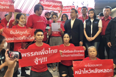 "คนเสื้อแดง"แห่ให้กำลังใจ"เพื่อไทย"แนะถอนตัวร่วมรัฐบาล ห่วงถูกโจมตีจากเอฟซีบางพรรค ลั่นยังมี 10 ล้านเสียงสนับสนุน