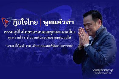 “ภท.” ออกแถลงการณ์ขอบคุณทุกคะแนนเสียง ยัน หลักการให้พรรคอันดับ 1 จัดตั้งรัฐบาลก่อน