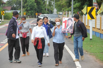 "สุภาพร"ผู้สมัครส.ส.เขต1ยโสธรพร้อมทีมงานเคาะประตูขอคะแนนในการลงพื้นที่โค้งสุดท้าย