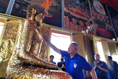 "โสภณ ซารัมย์"ผู้สมัคร ส.ส.ภท.ไหว้ขอพร"พระเจ้าใหญ่"วัดหงษ์เสริมสิริมงคลก่อนลงพื้นที่หาเสียง