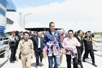 “นายกฯ” รับฟังบรรยายายสรุปประตูระบายน้ำจรเข้สามพัน แนะทำแห-ตาข่ายกั้น หลังประตูกั้นน้ำมีปลากระโดดขึ้นไปตกค้าง