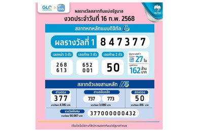 สุดเฮง! สลากดิจิทัลงวด 1 ส.ค.68 ถูกรางวัลที่ 1 รวม 27 ใบ มูลค่า 162 ล้านบาท คนเดียวถูกรวด 3 ใบ รับ 18 ล้าน