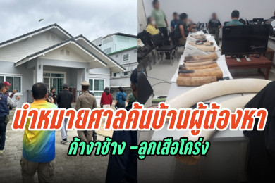 สุรินทร์ เจ้าหน้าที่นำหมายศาลเข้าตรวจค้นบ้านพัก 2 ผู้ต้องหา หลังถูกจับกุมพร้อมงาช้างและลูกเสือโคร่ง