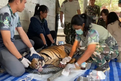 สุพรรณบุรี ย้ายเสือโคร่งได้รับบาดเจ็บจากบ่วงดักสัตว์ไปดูแลห้วยขาแข้ง
