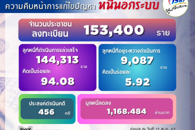 แก้หนี้นอกระบบเข้าสู่เดือนที่ 2 ลงทะเบียนแล้วกว่า 1 แสนราย ไกล่เกลี่ยสำเร็จ 1,043 ราย