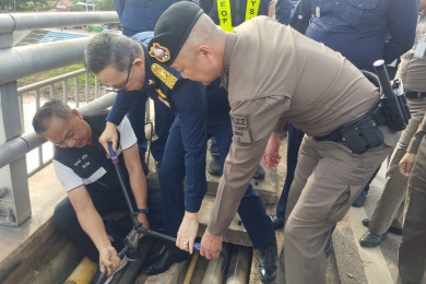 มุกดาหาร กสทช. จับมือ ตำรวจ ทำลายสายส่งเคเบิลขนาดใหญ่ ลักลอบพาดสายบนสะพานข้ามโขง เอื้อแก๊งคอลเซ็นเตอร์