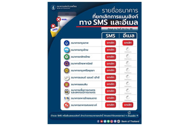 ห้ามคลิก! แบงก์ชาติเปิดลิสต์ชื่อธนาคาร ยกเลิกส่งลิงก์ผ่าน SMS และอีเมล์แล้ว