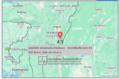ไม่ถึงครึ่งวัน แผ่นดินไหวเขย่าฝั่งไทย 3 ครั้ง เชียงใหม่เจอซ้ำอีกวัน 2 ครั้ง แม่ฮ่องสอน 1 ครั้ง