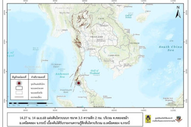 กรมธรณีฯ แจงแผ่นดินไหว 3.5 ที่กระบี่ เหตุรอยเลื่อนคลองมะรุ่ย