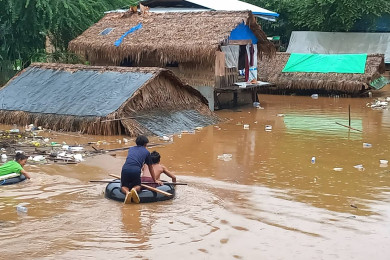 ฝนตกหนัก แม่น้ำเมยกัดเซาะแนวเขื่อนป้องกันตลิ่งพังเสียหาย เมืองเมียวดี สหภาพเมียนมา น้ำท่วมหนัก