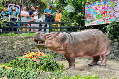 ฉลองวันเกิดครบ 59 ปี “แม่มะลิ” ฮิปโปฯ สวนสัตว์เปิดเขาเขียว มีอายุยืนที่สุดในไทย