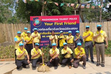 ตร.ท่องเที่ยวแม่ฮ่องสอน และอาสาสมัคร ร่วมทำความสะอาดปรับแต่งภูมิทัศน์เส้นทางรับเสด็จ
