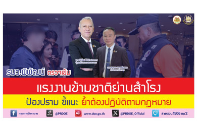 "กรมการจัดหางาน" แจงผลปฏิบัติการ “เจอ จับ ปรับ ผลักดัน" ครบเดือนตรวจสอบแรงงานข้ามชาติกว่าแสนราย