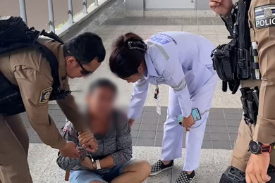 หญิงวัย 40 เครียดเพื่อนสนิทโกงเงิน ปีนราวสถานีรถไฟฟ้า ตร.ดึงตัวช่วยทัน