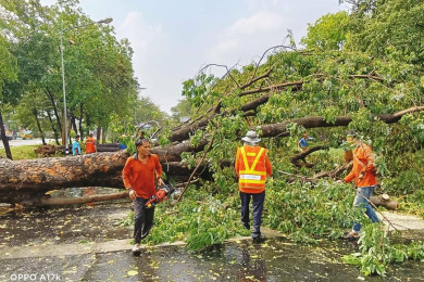 โคราชอ่วม พายุฤดูร้อนถล่ม 3 อำเภอ เสียหายกว่า 60 หลัง ทต.ปรุใหญ่ ต้นไม้ล้มทับรถยนต์พัง 10 คัน