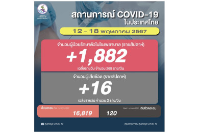 ยอดผู้ติดเชื้อโควิด-19 รอบสัปดาห์ 1,882 ราย เสียชีวิต 16 คน