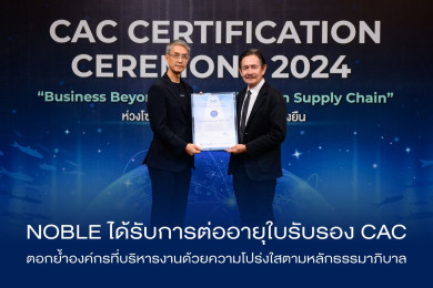 “โนเบิล” ได้รับการต่ออายุ CAC ครั้งที่ 1 ตอกย้ำองค์กรที่บริหารงานด้วยความโปร่งใสตามหลักธรรมาภิบาล