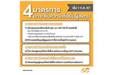 ตลาดหลักทรัพย์ฯปรับปรุงมาตรการกำกับดูแลการขายชอร์ต-โปรแกรมเทรดดิ้ง ยกระดับความเชื่อมั่นของผู้ลงทุน เริ่ม 1 ก.ค.67