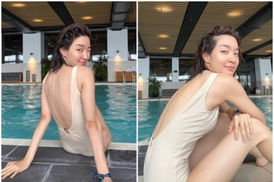 เซ็กซี่เบาๆ "โม มนชนก" แจกความสดใส สวมชุดว่ายน้ำนั่งชิลๆริมสระ