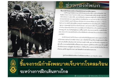 "กองทัพบก" ชี้แจงกรณีกำลังพลบาดเจ็บจากโรคลมร้อนในระหว่างการฝึกภาคสนาม