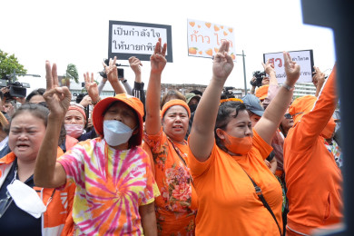 ม็อบเดือด! หลังศาลรธน.สั่ง "พิธา" หยุดปฏิบัติหน้าที่ จ่อบุกเข้าสภาฯ จนท.ตำรวจตั้งแถวสกัด