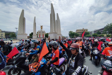 ประมวลภาพ “อานนท์” นำทัพ “คาร์ม็อบ” บีบแตร-ร่อนใบปลิว จี้ “ส.ว.-ผบ.เหล่าทัพ” ลาออกเมินโหวต "พิธา"นั่งนายกฯ