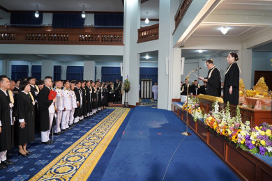 ในหลวง-พระราชินี พระราชทานพระบรมราชวโรกาสให้ รมว.กลาโหม นำตุลาการศาลทหารสูงสุด ตุลาการศาลทหารกลาง และตุลาการพระธรรมนูญศาลทหารชั้นต้น เฝ้าทูลละอองธุลีพระบาท ถวายสัตย์ปฏิญาณก่อนเข้ารับหน้าที่