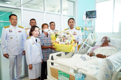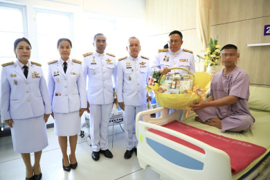 ในหลวง โปรดเกล้าฯ ให้รองผวจ.ยะลา เชิญดอกไม้และตะกร้าสิ่งของพระราชทาน มอบแก่จนท.ที่ได้รับบาดเจ็บจากเหตุจยย.บอม