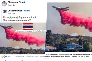 แฉ IO กัมพูชาปั่นข่าวปลอม กล่าวหาไทยใช้ “แก๊สพิษ” ทั้งที่เป็นภาพเครื่องบินดับไฟในสหรัฐ