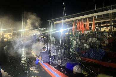 พังงา เกิดเหตุไฟไหม้เรือประมงพื้นบ้านขณะจอดหลบคลื่นลมท่าเรือบ้านทับละมุ เสียหาย 3 ลำ