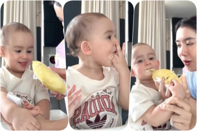 "ไอซ์ อภิษฎา" อวดโมเมนต์น่ารักลูกสาว "น้องเลอา" หม่ำทุเรียนครั้งแรก