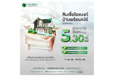 "ไอแบงก์" ออกสินเชื่อบ้านพร้อมเปย์ เติมสภาพคล่องทางการเงินให้ลูกค้า วงเงินสูงสุด 10 ล้านบาท