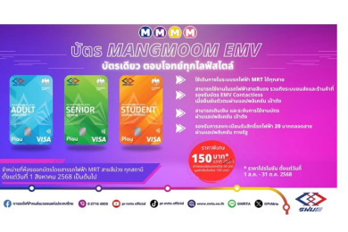 เปิดขายบัตร Mangmoom EMV ใช้รถไฟฟ้า 20 บาทตลอดสาย เริ่ม 1 ส.ค.68 ลงทะเบียนผ่านแอปทางรัฐ 25 ส.ค.นี้