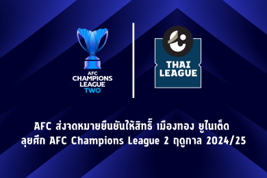 AFC ยืนยันสิทธิ์ "เมืองทอง ยูไนเต็ด" ลุยศึก AFC Champions League 2 ฤดูกาล 2024/25
